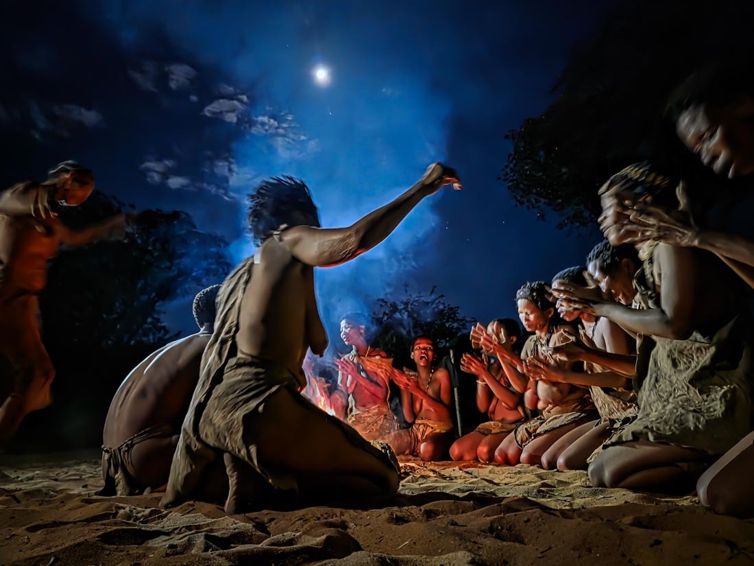Kot letos v Namibiji, ko je prvič potoval le s telefonom: »Prinesel sem domov hudo uporabne fotke. Nočni ples Bušmanov, le ob svetlobi žerjavice in polne lune, brez stativa ali fleša! S profi aparatom tega ne bi mogel narediti.«