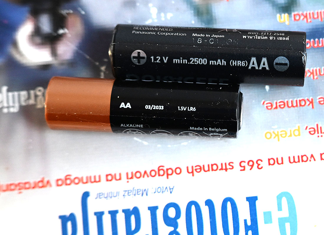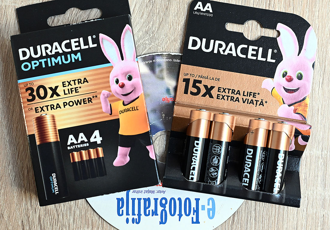 V preizkusu sem uporabil Panasonic Eneloop pro (črne) in Duracell klasične alkalne AA baterije.
