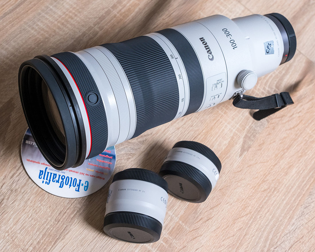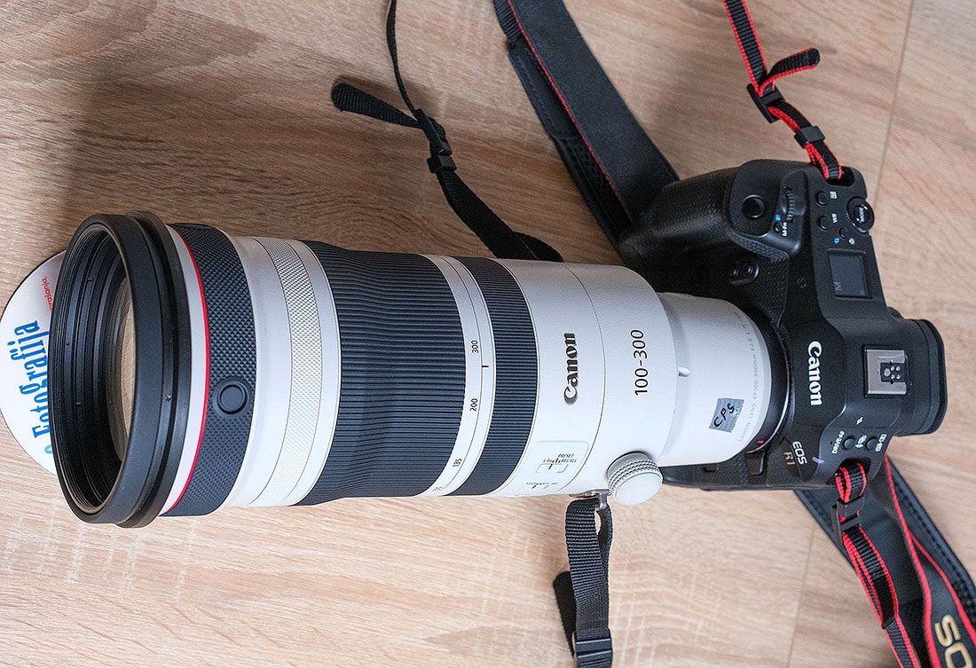 Enogoriščnega EF 300mm f/2.8L IS USM, je zdaj zamenjal zum RF 100-300 f/2.8L IS USM. Kljub zum tehnologiji je le za 100g težji in za 7cm daljši od enogoriščnega. Pride pa zum zelo prav, še toliko bolj, če se uporabi konverter. Z 2X-nim dobimo goriščnice 200-600mm, s svetlobno močjo f/5,6. Tudi s konverterjem pa je na voljo še vedno zadovoljiva kakovost ostrenja, kot tehnične kakovosti slike.