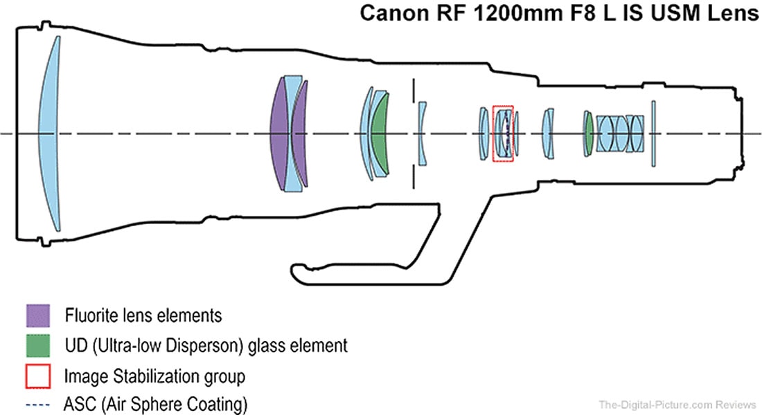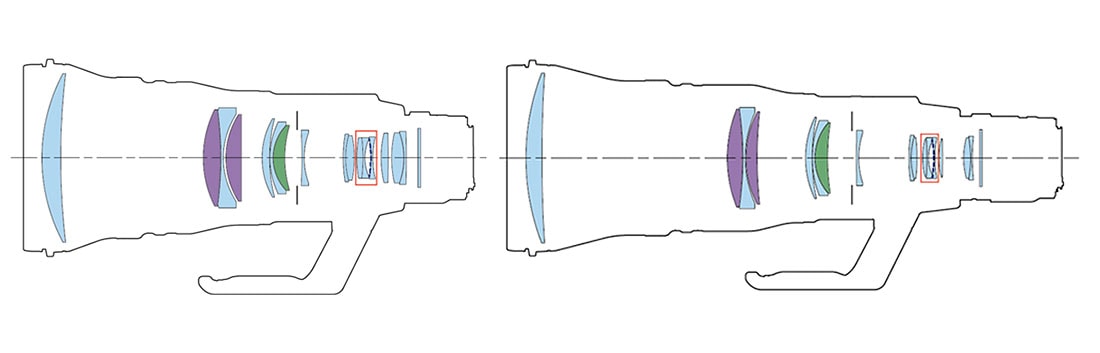 Canon je tudi pri ostalih PRO enogoriščnih teleobjektivih RF naredil zanimiv korak. Niso odkrivali tople vode. Iz odlične EF serije so povzeli celotno konstrukcijo 400mm f/2.8 in 600mm f/4 objektiva in so jima samo dodali daljši zadnji del, za večji odmik od tipala. Objektiva 800mm in 1200mm, pa sta na verziji 400mm in 600mm dobila še notranji sklop leč, kot, da bi dodali konverter 2X. Torej štirje objektivi z enakimi lečami, le da imata dva še dodatne na zadnjem delu, kot konverter 2X.