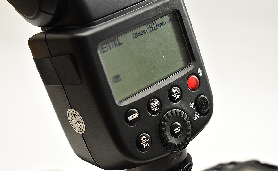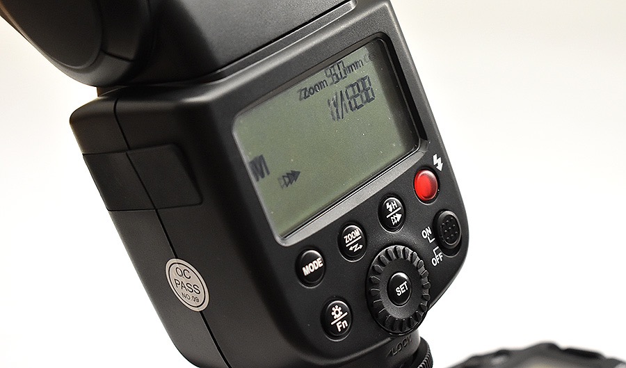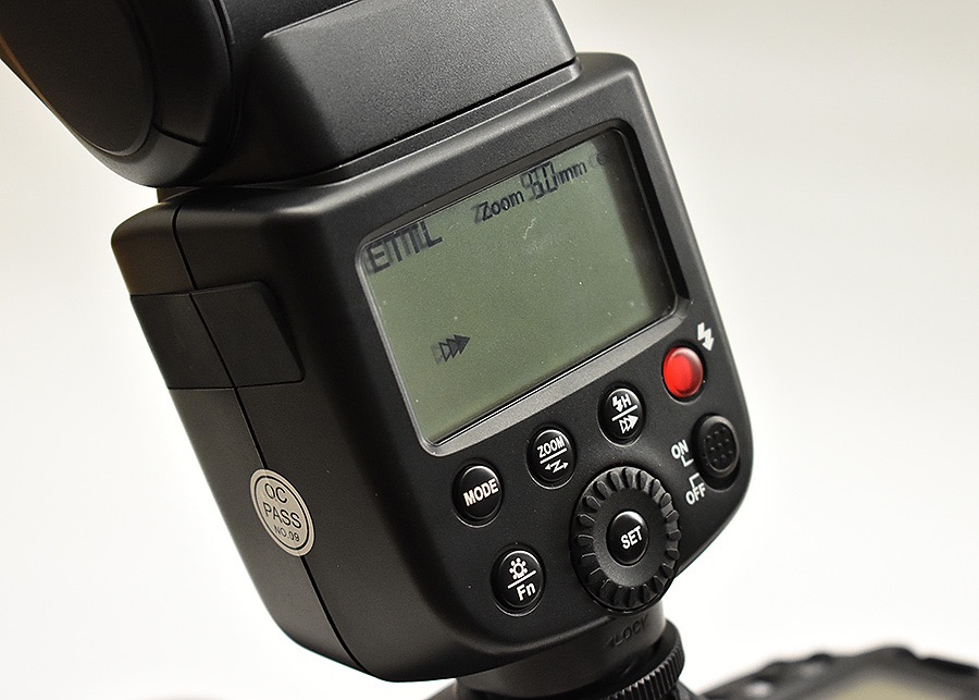 Tečajniku nastavljam bliskavico. Klik, klik, po gumbih. Kot, da držim v roki bliskavico Canon 580EX II. Le čudno veliki mi delujejo. Prav tako številke na zaslonu. Pogledam spredaj in vidim drug napis. Ja, če nisi pozoren bi ju hitro zamenjal.