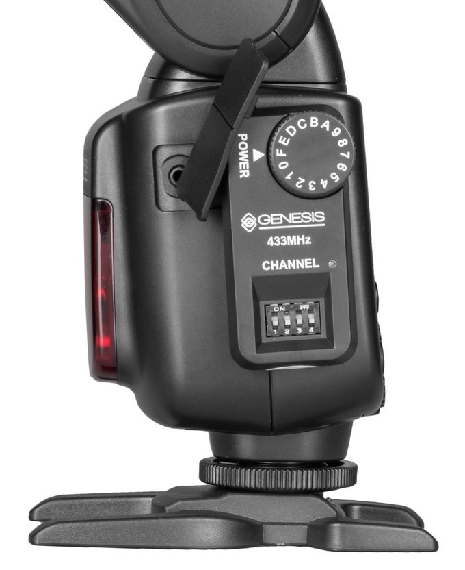 Preko Genesis Navigatorja lahko radijsko upravljamo z bliskavico vse do časov 1/250sek. Bliskavico lahko prožimo tudi s fotocelico. Opremljena je s standardnim Hot-Shoe nastavkom, zato lahko uporabljamo prožila tudi drugih proizvajalcev. Glava bliskavice je vrtljiva.