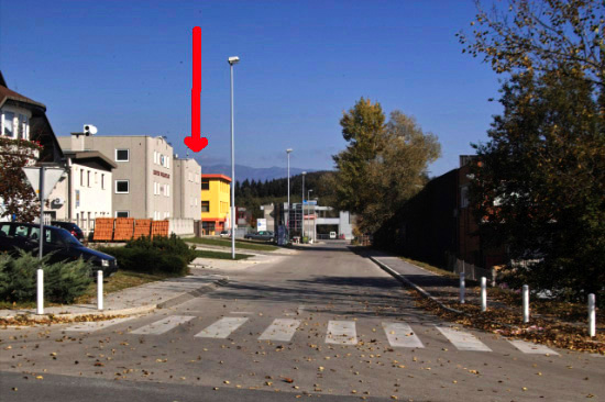 ... pred vami je ulica Prevale, pred rumeno stavbo je št.9 ...