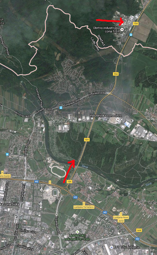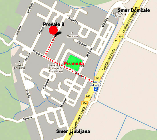 Vstop v IC Trzin, peljete samo naravnost, mimo piramide, do začetka klančka...