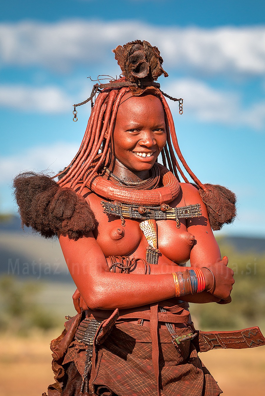 Portert Himbe v "zlati svetlobi". Ženska je ob jutranjem ritualu. Telo si maže z okro in maslom. Himbe se ne umivajo. Voda je predragocena. Zato se z drgnjenjem očistijo, koža je zaščitena pred žgočim soncem in manj se poti (izguba vode).
