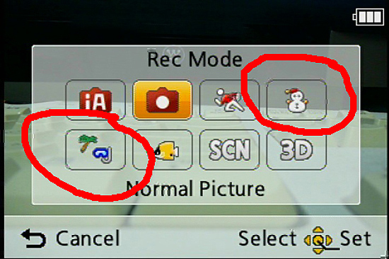 Programska slikovna avtomatika za fotografiranje na snegu bo poskrbela, da bo kamera upoštevala korekturo osvetlitve zaradi močnih odbojev od snega, vode, belega peska ali skal.