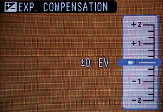 Če delujete v programskih nastvitvah P, S (Tv), A (Av), v primeru fotografiranja ob močni odbiti svetlobi od snega, vode, belega peska, skal, uporabite nastvavitev korekture osvetlitve EV (gumb na kameri ali preko menija).