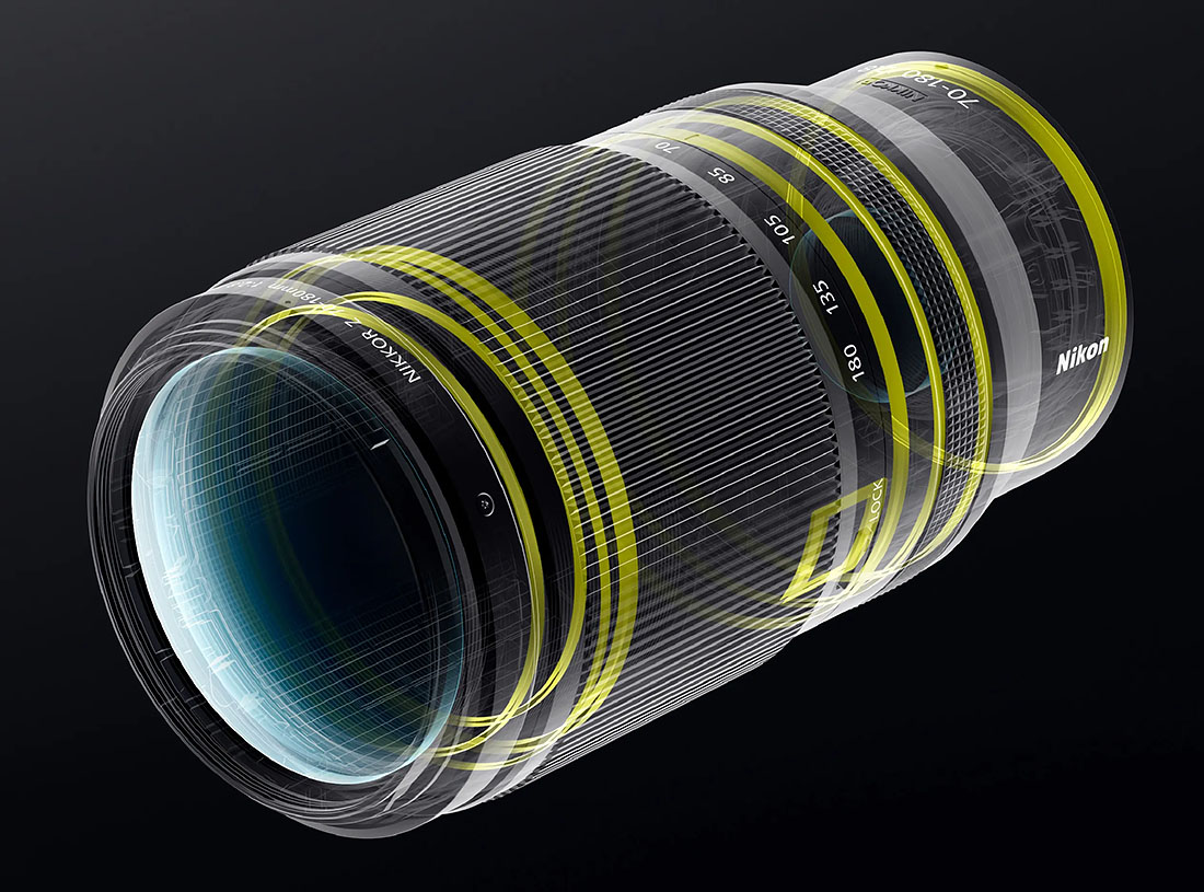 Objektiv Nikon Z 70–180mm f/2.8 nudi notranje ostrenje (IF). Prednja leča se ne vrti. Notranja optična konstrukcija nudi konvencionalno optične leče, kot posebej brušene ED in asferične leče.
