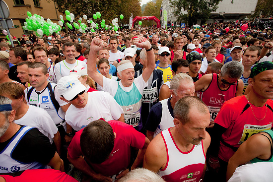 Hitro bo dal vedeti, da ga ne čakajmo takoj po štartu. Vsi so še v skupini in zelo težko se bo postavil na želeno mesto. Prav tako je veliko ljudi ob ograji kjer je edina možnost bližnjega posnetka in mogoče niti zraven ne bomo prišli. Na prvem kilometru je žar borbe še vedno močan. Bori se za boljšo pozicijo in marsikdo na začetku celo preceni svoje moči.