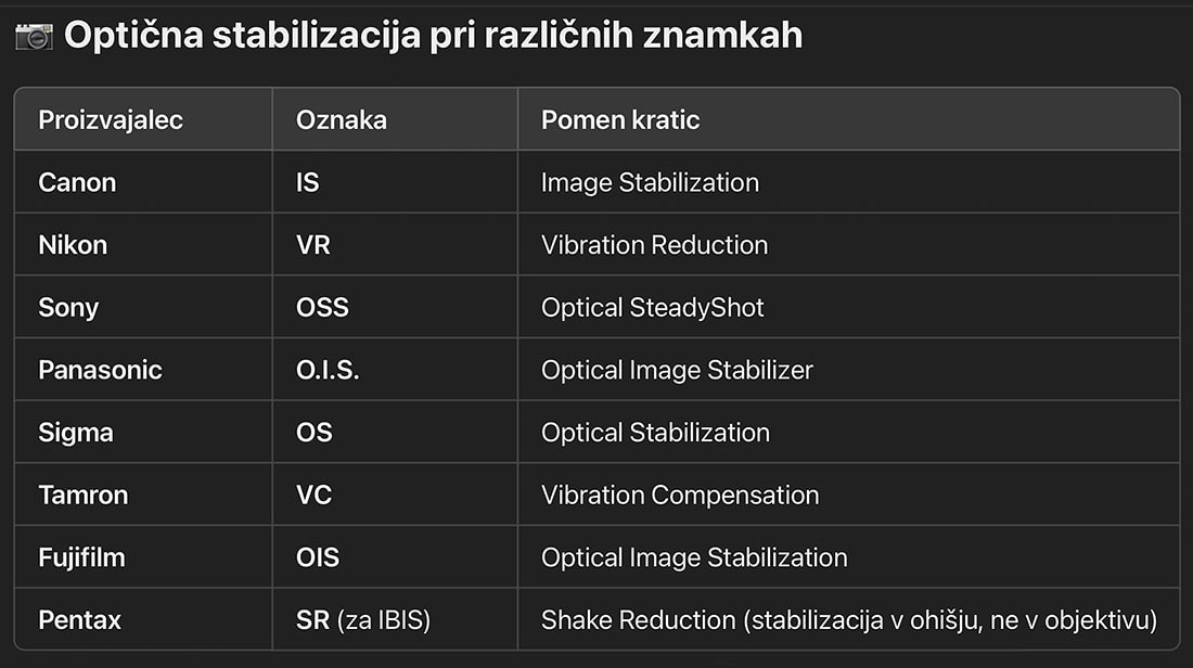 Pomembno je vedeti, da sodobni sistemi stabilizacije delujejo celo takrat, ko je kamera na stojalu. A proizvajalci še vedno priporočajo, da pri uporabi robustnih in dobro fiksiranih stojal stabilizacijo OIS raje izklopimo. Aktivni sistem lahko zaradi iskanja mikro premikov sproži nepotrebne korekcije, ki paradoksalno zmanjšajo ostrino posnetka.