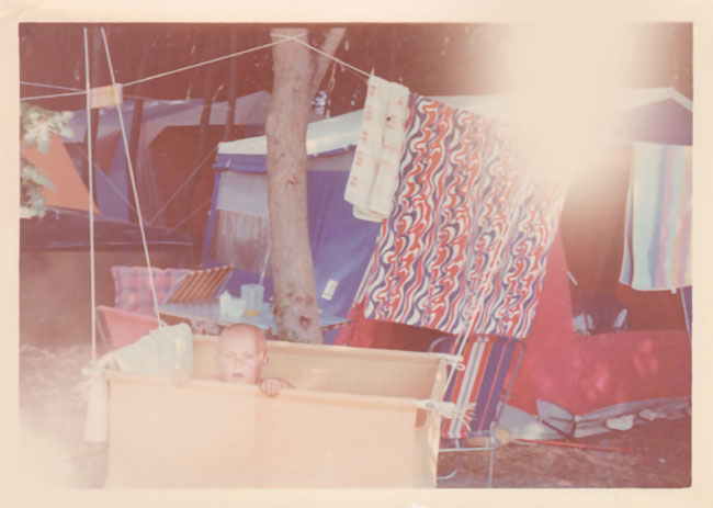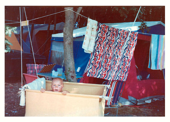 EFKE negativni barvni film in fotografija na fotopapirju še brez poliesterske osnove, narejena leta 1971. Negativ je že zdavnaj izgubljen, slika na papirju iz fotoalbuma pa močno obledela. Za prvo knjigo e-Fotografija iz leta 2001 sem poskeniral sliko in jo digitalno popravil.