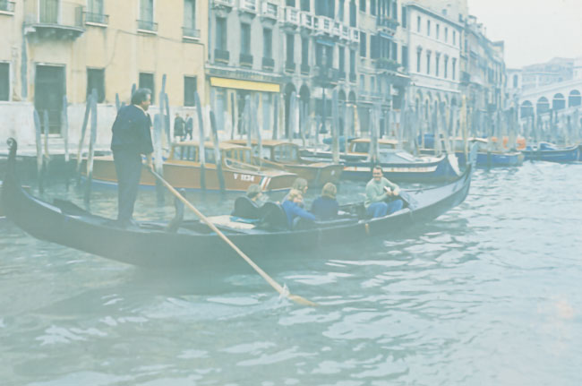 ORWO dia film in leto 1974 v Benetkah. Pred sedmimi leti sem poskeniral diapozitiv. Bil je že v zelo slabem stanju. Obledelost barv in rjavi fleki, od še vedno agresivnih kemikalij.