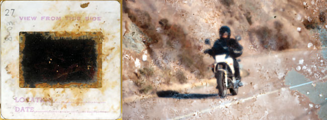 Pred osemindvajsetimi leti sem na diapozitivni film Kodachrome posnel dogodek s prijatelji. Diapozitive sem prilepil na belo pleksi steklo pred neonsko luč za dekoracijo sobe, ogled diapozitivov, ko so prišli kolegi na obisk, in da sem si jih lahko vedno ogledoval. Že po dveh letih so bile slike tako močno tonsko uničene, da sem jih lahko samo še vrgel v koš. Škoda, danes jih nimam nikjer in niti sodelujoči kolegi fotografi iz obdobja našega, pred osemindvajsetimi leti doseženega podviga, ko smo se z gumijastim čolnom in s Tomosom 4 peljali, ga porivali, brodili in plavali po Ljubljanici od jeza na Vevčah do jeza v Zalogu. In zakaj so slike na tako kakovostnem filmu tako hitro zbledele? Toplota, svetloba in vlaga so »smrt« za razviti barvni film.